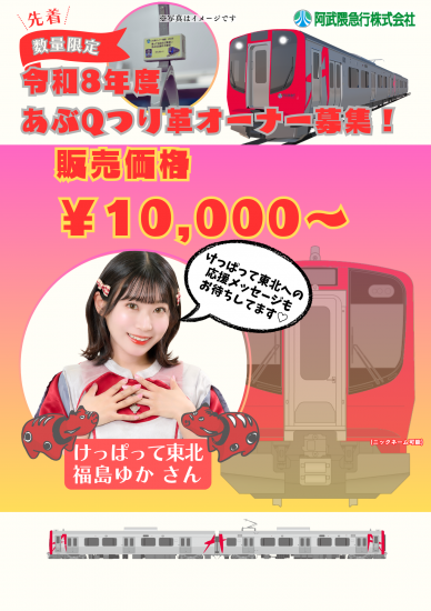阿武隈急行【AB900系】AB-6号車【赤色】に掲載するつり革オーナーを募集いたします。